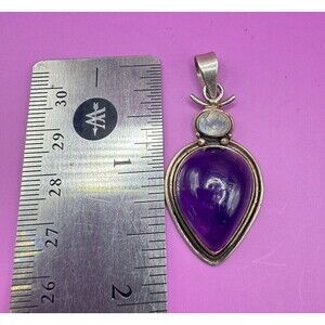 Amethyst Moonstone Sterling Pendant Pear Shaped Cabachon Faceted Stamped