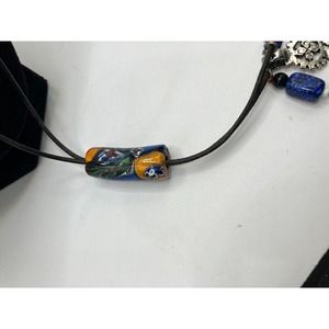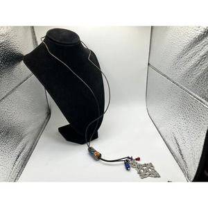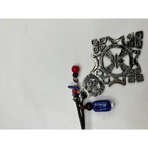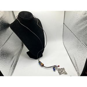 Artisan Aztec Style Metal Pendant Dangles Bolo Tie Tube on a Leather Cord!
