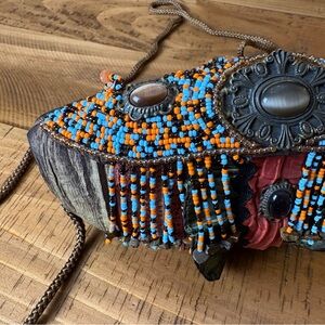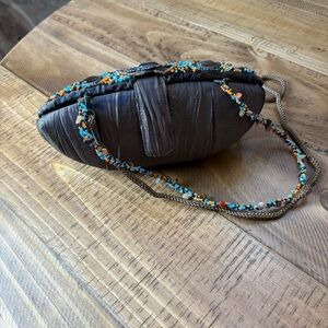 Artisan Beaded Clam Shell Clutch with Beaded Strap
