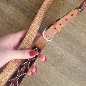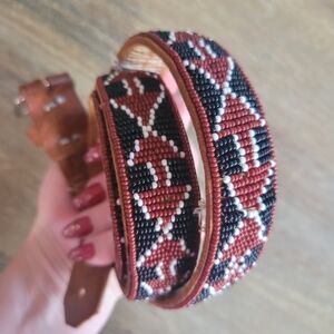 hand-beaded leather belt, typically crafted in a Western or artisanal style.