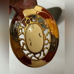 Artisan Belt Buckle Painted Enamel Cutout Oval Glossy Abstract Art to Wear Gold