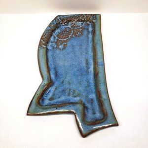 Elevate your dining experience with this artisan blue ceramic serving platter. Perfect for showcasing your culinary creations.