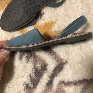 Stylish blue leather sandals. Comfortable and chic design. Perfect for casual wear.