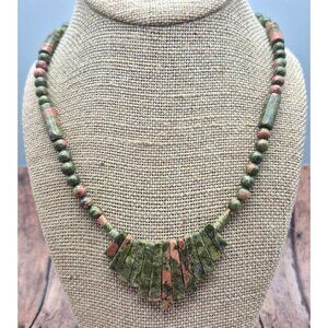 Artisan Boho Unakite Natural Stone Beaded Collar Bib Necklace Toggle Clasp 18"
