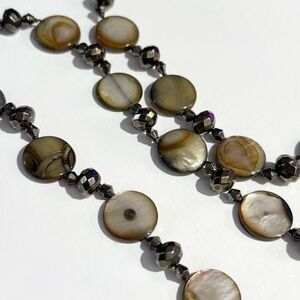 Artisan Bronze Iridescent Shell And Gunmetal Faceted Bead Long 46” Necklace