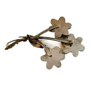 Artisan Brooch Sterling Silver Garnet Turquoise Flower Pin JS14