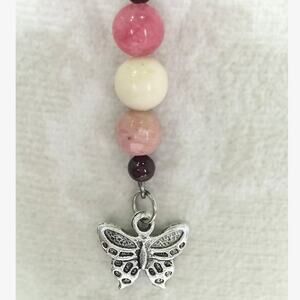 Artisan Butterfly Beaded Diffuser Keychain Natural Stone Bag Charm Lava Heart
