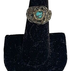 Artisan Caged Turquoise Sterling Silver Round Turquoise Ring Size 5.5 Vintage