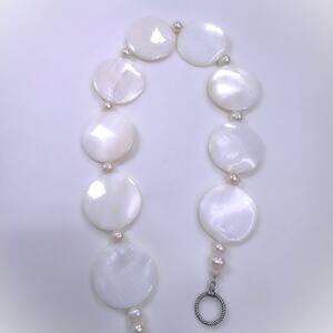 - Mother of Pearl (MOP) flat beads 1-1/2" round that create a subtle iridescent glow