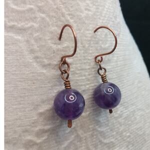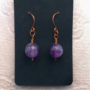 Artisan Copper Amethyst Stone Earrings Wire 12mm Round Gemstone Drop Dangle NEW