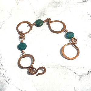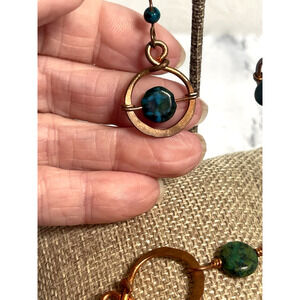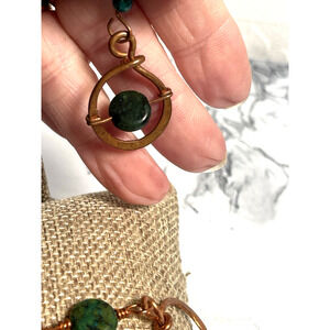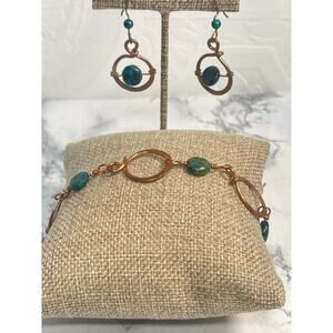 Artisan Crafted Copper Wire and Turquoise Bracelet and Earring Vintage Set