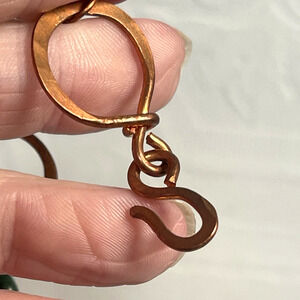 This listing is for a vintage Artisan Crafted, Copper Wire and (presumed) Turquoise Bracelet & Earring Set. The set is in nice condition with patina consistent with age. These are not marked, and the small stones appear to be turquoise to my inexperienced eye, but they have not been verified. The bracelet will fit up to a 6.75" wrist.