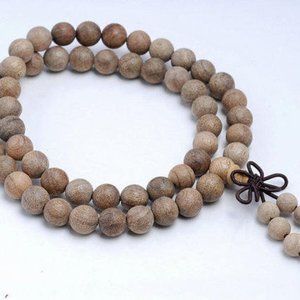 The wooden beads are remnants sourced from artisan furniture crafters.