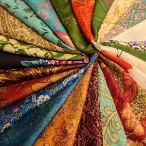 Using discarded saris and wrapping them over small wooden beads creates a stunning work of art