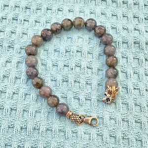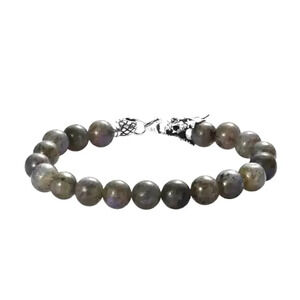 Artisan Crafted Natural Malagasy Labradorite Beaded Bracelet In Sterling Silver Dragon Clasp Connections.