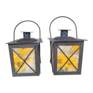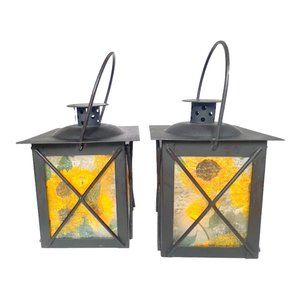 Artisan Crafted Metal Lantern Decoupaged Sunflower Paper Set of 2 One of a Kind