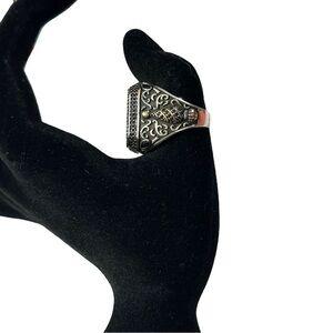The ring is a size 11 and has a flush setting style. It is made of 925 silver and is not signed or vintage. The design is perfect for anyone who loves beauty, art, and exceptional quality. This ring is a perfect gift for any occasion and comes from the United States.