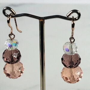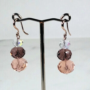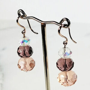 Artisan Crystal Bead Earrings Faceted Pink AB Irridescent Delicate Roman…