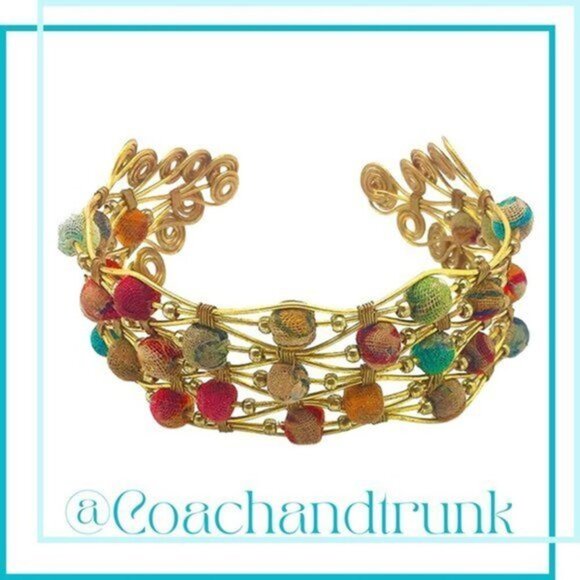 Artisan Cuff Crafted Wire Work w/Upcycled Sari Wrapped Beads NWT Sustainable
