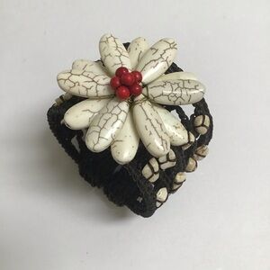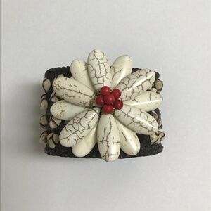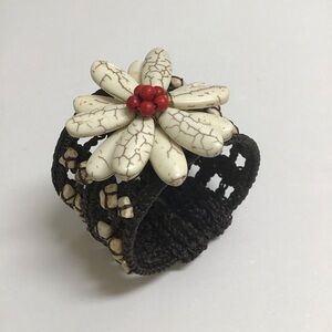 Artisan Cuff Handmade Howlite Flower Gemstone Bracelet Macrame Boho Chunky NEW