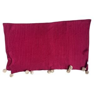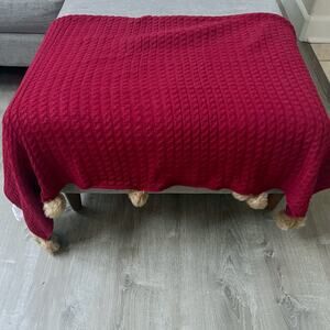 Artisan De Luxe Medium Throw 54" x 47" Cable Knit Red Pom Poms Christmas Holiday