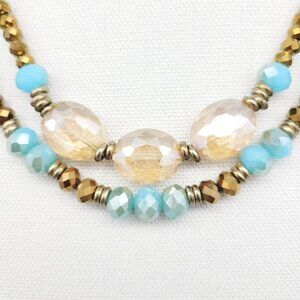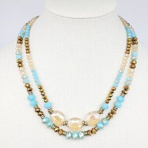 Artisan Double Strand Faceted Crystal Glass Beaded Necklace Electroplated Gold