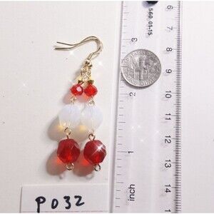 Artisan Earrings 032p# Red milky glass long dangle earrings handmade 3 Crystal P