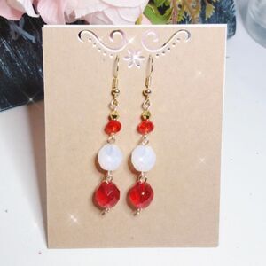 ■ Czech crystal Red & Milky crystal faceted glass dangles on antique gold special occassions holiday mood