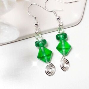 Artisan Earrings 034L# Green Sea glass matte glass torch beads bicones spirals