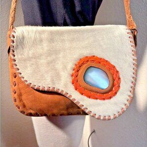 Artisan French Leather Cowhide & Agate Crossbody Bag | MAÏA Boho