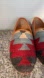 Elevate your look with these artisan men’s loafers, featuring a striking geometric pattern in red, black, and cream. Perfect for adding a unique touch to any ensemble.