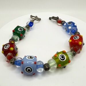 Vibrant bracelet featuring multicolored beads with eye motifs. Perfect for adding a pop of color to any outfit.