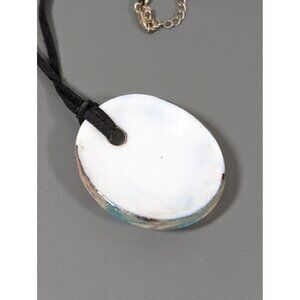 Artisan Hand Blown Glass Dichroic Oval Pendant Blue Purple Spiral Cord Necklace
