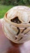 Beautiful carved stone sphere with intricate floral cutout patterns. Features a blend of earthy tones. Some wear from previous use as shown. 4” x 3” approximately.