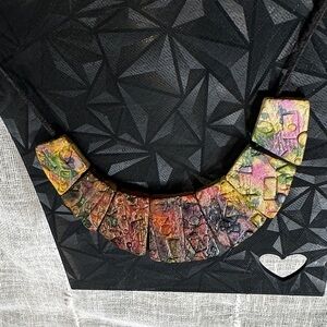 Artisan Handcrafted Multicolor Mosaic Tile Inspired Tribal Sculpted Necklace EUC