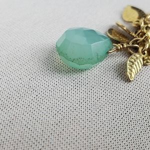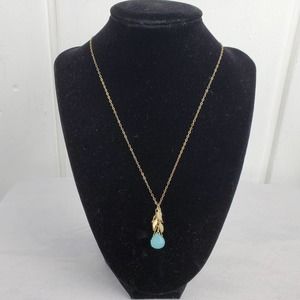 Beautiful 1/20 14kt gold filled leaf cluster with blue briolette bead/stone necklace- unsure of the stone. The stone has minor damage- unnoticed until I handled it up close. Spring Ring Closure