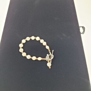 Exquisitely crafted artisan handmade bracelet featuring natural white quartz beads on a sterling silver chain with a secure toggle clasp.