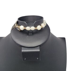 Artisan Handmade 925 Sterling Silver White Quartz Bicone Beaded Bracelet Healing