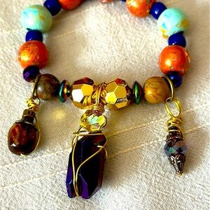 Artisan Handmade Bracelet with hand painted Beads glass charms and metals
