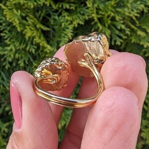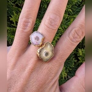 Artisan Handmade In Morocco Adjustable Boho Chic Double Geode Gold Ring Size 10