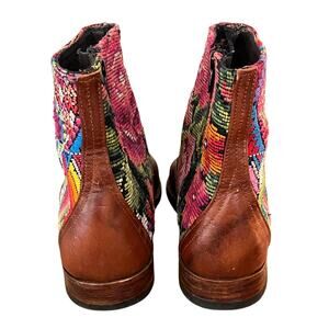 Artisan Handmade Leather Boots Guatemalan Huipil Textile Boho Ankle Boot