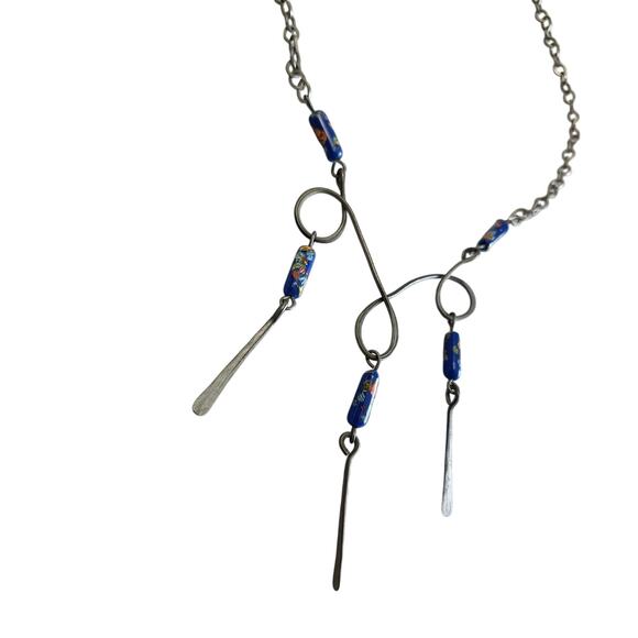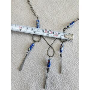 Artisan Handmade Sterling? Tribal Necklace Chandelier Dangle Blue Bead