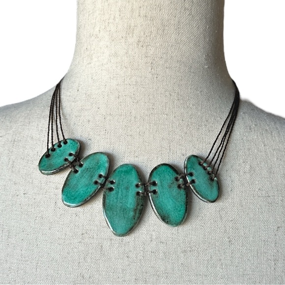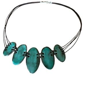 Artisan Handmade Teal Ceramic Statement Necklace Brazilian Jewelry 17"