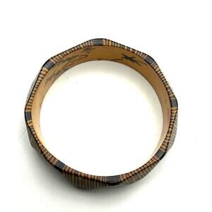 Artisan Handmade Wood Bangle Bracelet Signed Stripe Chaos 2016 Jewelry