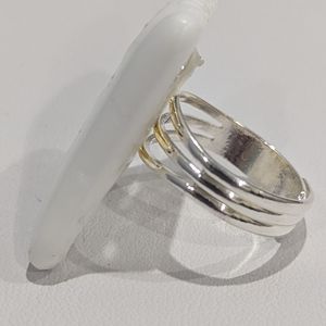 Artisan Handmade large white glass statement ring with dichroic glass accents