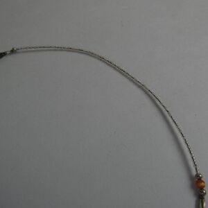 Probably handmade, very pretty piece featuring what looks like genuine carnelian and silver tone beads on two strands that join up at the sides.