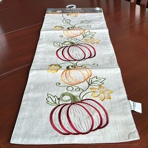 Artisan Harvest Table Runner,embroidered pumpkins/flowers, 90% poly,10% linen