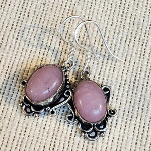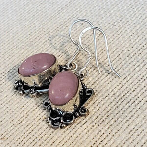 Delight in the beauty of these stunning oval stone earrings crafted by Indian artisans. These bohemian-inspired dangle/drop pieces feature a unique art nouveau scroll design that exudes elegance and sophistication. The earrings are made of 925 sterling silver and showcase a natural stone material that adds a touch of exotic flair.