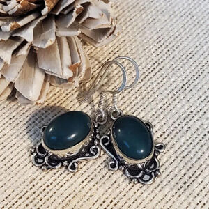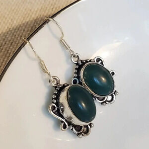 Delight in the beauty of these stunning oval stone earrings crafted by Indian artisans. These bohemian-inspired dangle/drop pieces feature a unique art nouveau scroll design that exudes elegance and sophistication. The earrings are made of 925 sterling silver and showcase a natural stone material that adds a touch of exotic flair.