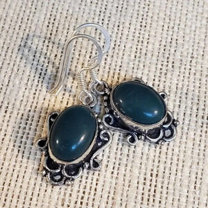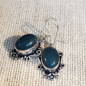 Artisan India Art Nouveau Scrolls Oval Stone 925 Sterling Silver Earrings